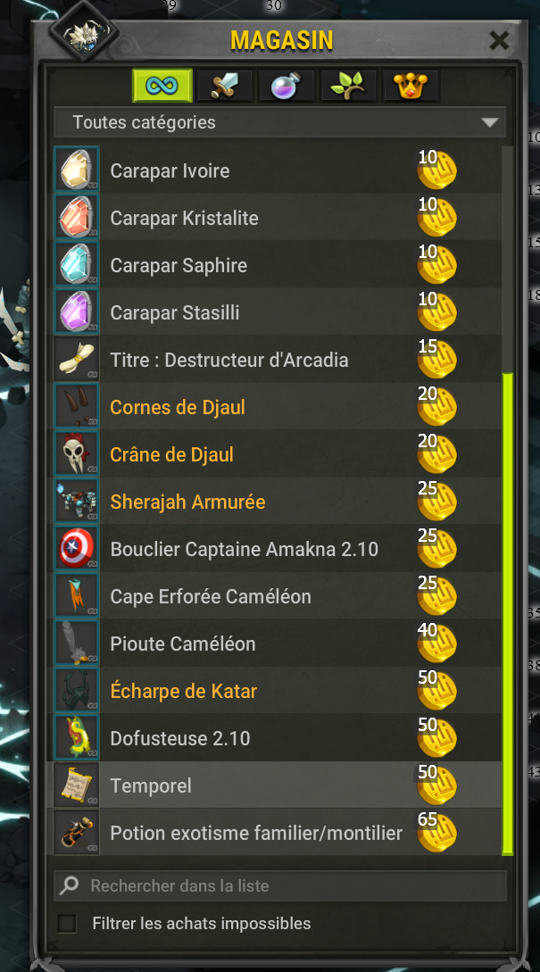 Des récompenses exclusives très alléchantes sont achetables, avec les Jetons du Cauchemar d'Arcadia.